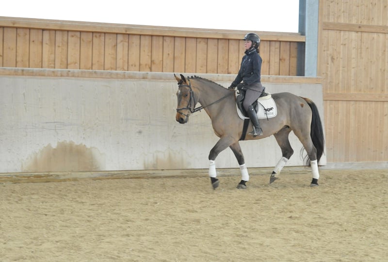 Kompakte, sehr sympathische braune Stute mit bester Allrounderqualität. Schon allein durch ihre liebenswerte und unkomplizierte Art, kann sie durch ihr Wesen punkten. Erst seit kurzem unter dem Sattel zeigt sie sich trotzdem ausgeglichen und nervenstark. Ihre Allrounder- und Reitqualitäten lassen ebenfalls keine Wünschen offen.