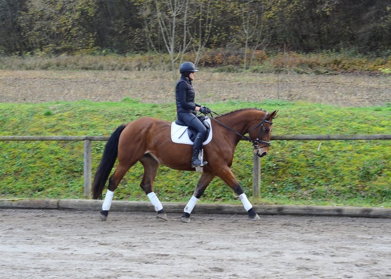 Kompakte sehr sympathische, herzliche Stute. Allein durch ihre liebenswerte und unkomplizierte Art kann sie durch ihr Wesen punkten. Die Stute ist bequem zu sitzen, einfach durchs Genick. Eine tolle Allrounderin für den vielseitigen Einsatz für Dressur, Freizeit, Springen und Geländeausritte.