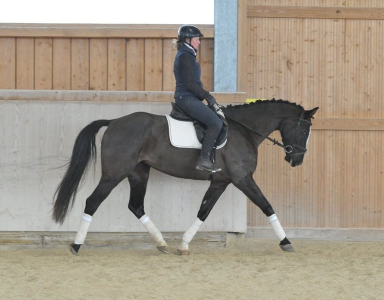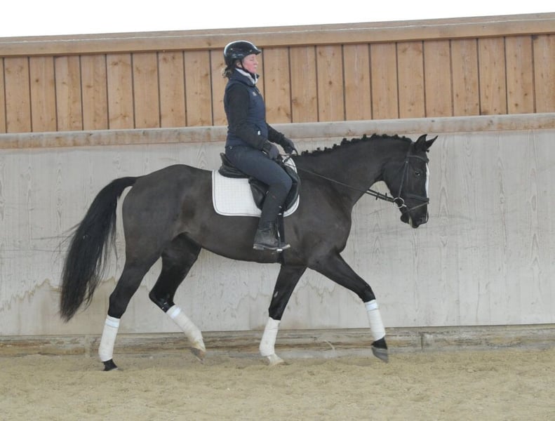 Bezaubernde Rappstute mit absolut liebenswertem Charakter. Unkompliziert in ihrer ganzen Art. Bereits auf dem sicherem Weg zu A-Niveau. Mit Geländeerfahrung, leicht zu händeln. Mit viel Vorsicht und Vermögen am Sprung. Ausgeglichen und liebenswert lässt sich die bezaubernde Lady nicht so leicht aus der Ruhe bringen.