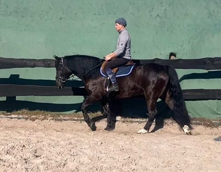 Zum Verkauf steht eine 6-jährige Rappstute vom kräftigen Typ mit einem Stockmaß von ca. 1,60 m. Sie ist kompakt gebaut, gut bemuskelt und sehr tragfähig – somit auch für einen etwas schwereren Reiter bestens geeignet. Die Stute ist korrekt angeritten und sicher in den drei Grundgangarten zu reiten. Sie zeigt sich brav, ruhig und zuverlässig und ist daher auch für Kinder sowie weniger erfahrene Reiter unter fachkundiger Anleitung geeignet. Im Gelände ist sie absolut unkompliziert, geht sowohl alleine als auch in der Gruppe und zeigt sich dabei nicht schreckhaft. Andere Nutztiere kennt sie und reagiert stets gelassen. In der Herde ist sie sozial und verträglich mit anderen Pferden. Eine angenehme, ausgeglichene und vielseitige Stute, die sich ideal als Freizeit- und Familienpferd sowie für die tägliche Arbeit eignet. Standort: Polen, ca. 70 km von Görlitz entfernt (ca. 40 Minuten). Transport: möglich.