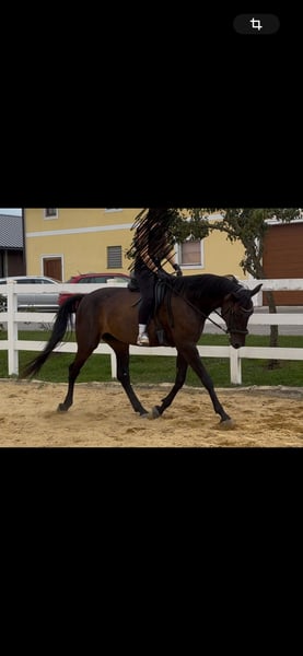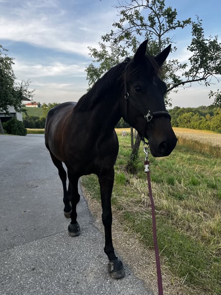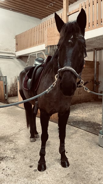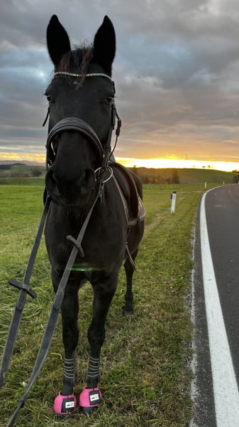 ☁️Ábránd (ungarisch „Tagtraum“) ist eine lernwillige, menschenzugewandte Stute mit viel Herz. Sie genießt die Nähe zum Menschen und würde ihrem Bezugsmenschen am liebsten überallhin folgen. 🌟Dressurmäßig befindet sie sich derzeit auf A-Niveau. Sie ist fein zu reiten und geht fast von alleine – auch bei unerfahrenen Reitern – in eine schöne Anlehnung. Besonders angenehm ist ihre gute Reaktion auf Stimmhilfen, wodurch auch Anfänger große Freude mit ihr haben. Dabei ist sie stets vorsichtig und aufmerksam.🤗 In der Boden- und Freiarbeit ist Amy motiviert und engagiert dabei. Sie reagiert sensibel auf Körpersprache und Stimme und arbeitet konzentriert mit. Auch bei der Stangenarbeit zeigt sie sich brav und motiviert. Sie ist auch gebisslos fein zu reiten. 🌳🍀Beim Spazierengehen ist sie sowohl alleine als auch in der Gruppe sehr zuverlässig und brav. Beim Ausreiten ist sie in der Gruppe unkompliziert. Alleine benötigt sie derzeit noch etwas Sicherheit – entweder vom Reiter oder durch eine begleitende Person am Boden. Da sie bei mir nicht viel alleine ausgeritten wurde, lässt sich dies mit ruhigem Training sicher gut aufbauen. 🦄Amy ist ein energiegeladenes Pferd mit Charakter, das hin und wieder etwas „Go“ mitbringt und manchmal umweltorientiert sein kann. Auf Kinder und Anfänger passt sie jedoch gut auf. Da sie gelegentlich schreckhaft oder guckig sein kann, sollte sie zwischendurch von einer erfahrenen Person gearbeitet werden. Dabei wird sie jedoch nie böse, sondern höchstens einmal ein etwas stur. 😉 Im täglichen Umgang ist sie sehr unkompliziert. Beim Putzen, Trensen, Aufsteigen und generell im Handling zeigt sie sich immer sehr brav. Sie kann problemlos ohne Sattel oder mit Pad geritten werden! Aktuell steht sie nachts in der Box und tagsüber am Paddock. Offenstall kennt sie ebenfalls und fügt sich schnell in eine Herde ein. Sie ist ein sehr soziales, herdenverträgliches Pferd. 🐴🐴 Ein Kennenlernen und Probereiten sind nach Absprache jederzeit möglich. Bei ehrlichem Interesse werden gerne weitere Fotos und Videos zugesendet.😊 Die Möglichkeit, sie zur Verfügung zu nehmen, ist ebenfalls gegeben. Ein passender Sattel sowie weiteres Zubehör können gerne miterworben werden. 👍