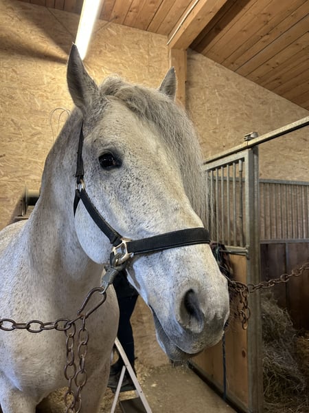 Very handsome stallion looking for a companion or breeding opportunity! He is very well-behaved and not at all dominant towards other stallions; he has even been ridden by children under my supervision. Due to arthritis, he can only be ridden at a walk now. Currently, he is turnout with another stallion.