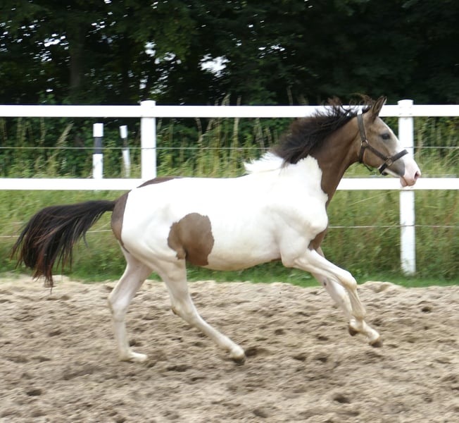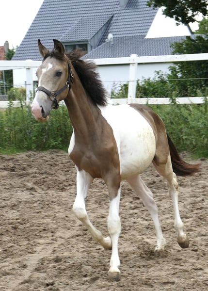 Traumjährling mit großartigem Charakter! Ein Pferd zum liebhaben! Den tollen jungen Mann haben wir MIRADON A getauft. Das bedeutet "das Gute zu mögen". Miradon, geb. 2024 ist ein Sohn des Michelangelo aus der Ismo's Emi von Ismo x Shakespeare x Potsdam NRW, Halbschwester des gekörten Hengstes Cadiz. Sein Endmaß schätzen wir um 168cm. Hochinteressanter Nachwuchs in Buckskintobiano für Vielseitigkeit und Springsport!