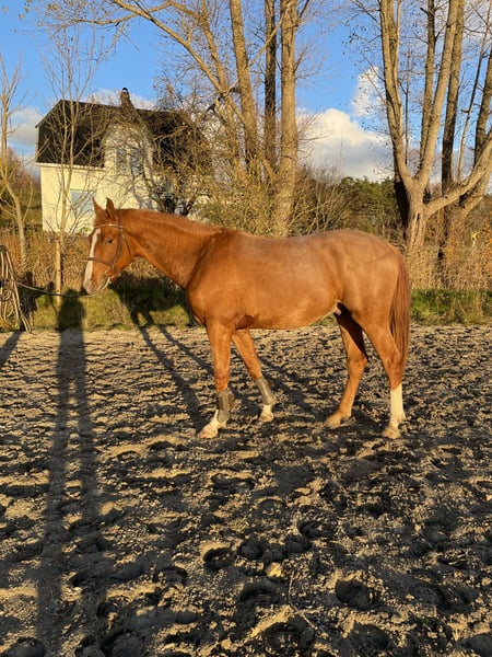Our beautiful “Bulle,” as he’s called on a daily basis, is now looking for a new home! Norwegian Warmblood, cryptorchid stallion, born 2023. Sire: Giga Star De Tiji Dam’s sire: Graf Top Bulle is a fantastic 2-year-old with top jumping bloodlines. His sire, Giga Star De Tiji, was Norway’s most used breeding stallion in 2021 and has several placings in international 1.45m classes. According to Stutteri B, his offspring are brave, elastic, and possess an exceptional canter. Here’s your chance to develop your next superstar! He is quick, supple, elastic, and balanced in his movements. He has excellent conformation and is easy to handle. He jumps and moves with promising technique, showing plenty of potential and capacity! Bulle has developed evenly and harmoniously — he’s very well-balanced, strongly built, yet athletic and light. He has good, strong hooves. He’s a brave, curious, and intelligent type — rarely spooks or gets nervous. Calm and well-behaved in his stall, stands nicely tied in the aisle, and is very easy to handle. He has been lunged and free-jumped. We started introducing tack this summer, which went perfectly smoothly. He’s worn a saddle, girth, boots, and bridle with bit without any issues. Has been regularly followed up with vaccinations, hoof care, and deworming. Bulle is a very social and kind guy. He loves attention and cuddles and is soon ready to start his life as a riding horse! Given how easy and straightforward he is in all handling, we believe he will be very simple to break in!