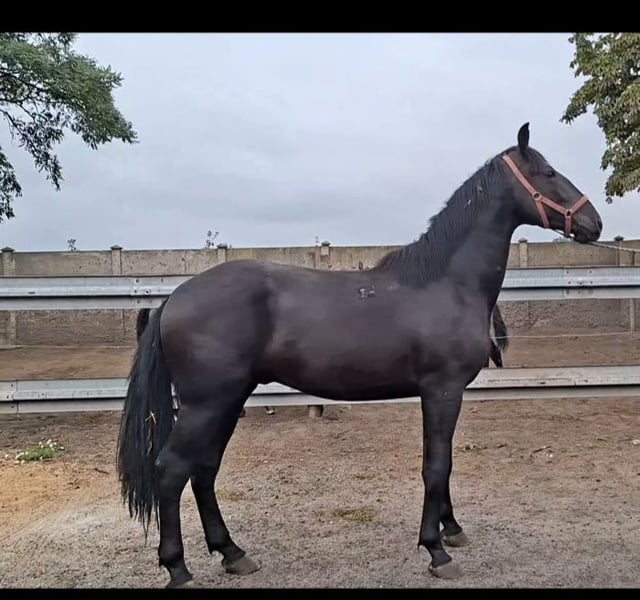 Na sprzedaż! Ogier urodzony w lipcu 2023 roku Czarny z pełną rodowodową linią, rasa Nonius Jest jeszcze młody i nie w pełni wykształcony Obecnie ma około 160+ cm w kłębie Cena 1300 € do negocjacji Stoi w Polsce Więcej informacji na priv lub pod numerem 0048695346701 Transport jest możliwy Proszę dzwonić pod numer 0048695346701