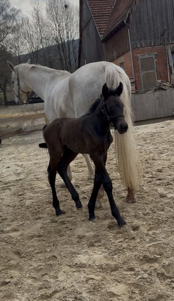 Hochinteressantes Hengstfohlen mit international bewährter Springabstammung Zum Verkauf steht ein außergewöhnlich vielversprechendes Hengstfohlen, geboren am 17.03.2026, gezogen aus einer hochkarätigen Springlinie: Chacco’s Son x Cornet Obolensky Väterlicherseits stammt das Fohlen ab von Chacco’s Son, einem Sohn des legendären Chacco-Blue, der zu den bedeutendsten Vererbern im internationalen Springsport zählt. Chacco’s Son überzeugt nicht nur durch Eigenleistung, (u.a. 5* Nationenpreis-Sieger CHIO Aachen) sondern vor allem durch seine bereits erfolgreichen Nachkommen, die sich durch Vermögen, Vorsicht am Sprung und enorme Leistungsbereitschaft auszeichnen. Seine Nachzucht ist international im Parcours gefragt und zeigt sich modern, athletisch und leistungsstark. Mütterlicherseits bringt Cornet Obolensky bewährte Spitzenvererbung ins Pedigree. Als einer der einflussreichsten Springhengste weltweit steht er für außergewöhnliche Technik, Reflexe und Siegermentalität. Zahlreiche Nachkommen sind auf höchstem Niveau im internationalen Sport erfolgreich. Dieses Hengstfohlen vereint somit zwei der aktuell gefragtesten Leistungslinien im Springsport und bringt beste Voraussetzungen für eine Karriere im großen Sport oder in der Zucht mit. Hervorzuheben ist auch die mütterliche Abstammung Cornet Obolensky x Cento In der auch die Mutter von der Mutter (Cellina. Cento x Legaat) in der schweren Klasse erfolgreich war! Neben seiner hervorragenden Abstammung überzeugt das Fohlen durch: • modernes, langbeiniges Erscheinungsbild • kraftvolle, bergauf Galloppade • sehr gute Übersicht und Gleichgewicht • aufgeschlossenen, menschenbezogenen Charakter Ein Nachwuchspferd mit genetischem Potenzial für höchste Ansprüche! Bei Interesse freuen wir uns über Ihre Kontaktaufnahme. Gerne auch weitere Fotos oder Videos auf Anfrage!
