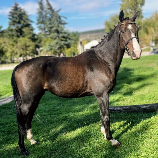 Attention all show jumpers!!! HUGODAR... a Bulgarian sport horse with excellent jumping ability and extensive competition experience, including current placements in the L-class, is looking for his forever home. A stunning and brave gelding with a wonderful temperament, he is easy to handle in daily interactions and very well-behaved. He is 9 years old and stands 1.65 meters tall. His sire is a Thoroughbred, and his dam is a German sport horse. He approaches obstacles confidently in the parkour and often assesses the takeoff point on his own. Hugodar is suitable for amateur riders in terms of handling and riding, but he is not recommended for beginner jumpers. He is completely uncomplicated, performs flying changes smoothly, and jumps cleanly whenever he receives the appropriate aid. His gait is impressive, and he would also be a good candidate for dressage competitions. He gets along well with other horses. He is familiar with the farrier and veterinarian and has no issues with either. Loading him into a trailer or truck is completely trouble-free; he stands calmly and quietly. If you're looking for a top-quality show jumping horse, you will definitely find what you need in him. Please contact me with your phone number so I can get in touch with you as soon as possible.