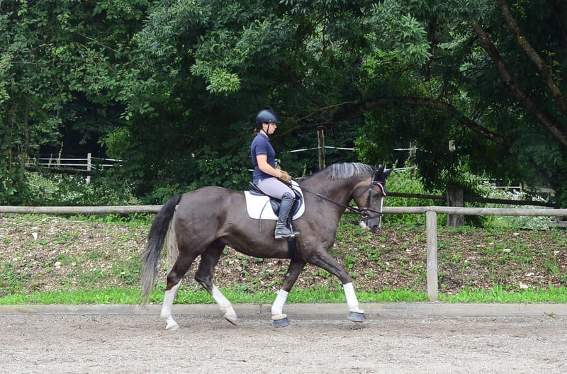 Sehr sympathischer Dunkelfuchs-Wallach mit ehrlichem Charakter und guten Nerven und angenehmen Sitzkomfort. Mit Talent und Vorsicht am Sprung kennt er auch schon kleinen Parcours. Ein toller Allrounder für den vielseitigen Einsatz für Dressur, Springen, Freizeit und Gelände.