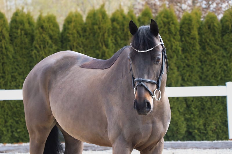 Der 11-jährige „Dragan“ ist ein sehr ruhiges und unbeeindrucktes Pferd. Er ist im besten Alter und hat schon viel Erfahrung und Routine. Der Wallach kennt Führmaschine, Sandpaddock und Koppel, sowohl alleine als auch in der Gruppe. Im Umgang ist er ausnahmslos brav, steht immer still, beim putzen, satteln, waschen, Schmied - alles kein Problem und ist auch von Leuten ohne Pferdeerfahrung einfach zu händeln. Beim Reiten überzeugt er mit seiner gelassenen und vor allem ruhigen Art. Er geht schön in Anlehnung und hat nicht so viel Blut, das ermöglicht es ihm, auch mit schwächeren Reiter und wackligeren Hilfen gut umzugehen. Er kann auch mit einem Ausbinder geritten werden. Dragan kennt die Arbeit an der Longe und ist auch dabei absolut unkompliziert. Ein weiterer schätzenswerter Bonus ist seine absolute Zuverlässigkeit im Gelände. Sowohl alleine als auch in der Gruppe geht er brav vom Hof und zeigt sich im Gelände stets zuverlässig. Der Wallach ist absolut straßensicher und mit ihm steht einem gelassenen und ruhigen Ausritt nichts im Weg. (Siehe Video) UNBEDINGT GANZES VIDEO ANSCHAUEN, GELÄNDE, SPRINGEN IST AUCH ZU SEHEN. • Stockmaß-Angaben sind geschätzt und nicht exakt nachgemessen • Alle Beschreibungen sind subjektive Einschätzungen des Verkäufers und keine zugesicherten Eigenschaften • Aktuelle Röntgenbilder ohne Befund, sowie ein einwandfreier klinischer TÜV liegen vor. Bei Interesse gerne telefonisch melden unter 015140555583. Sie können sich auch am Wochenende oder an Feiertagen bei uns melden.