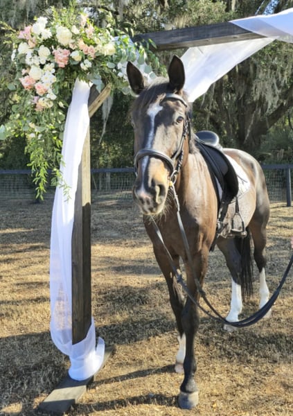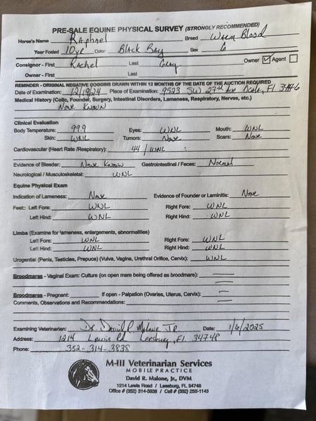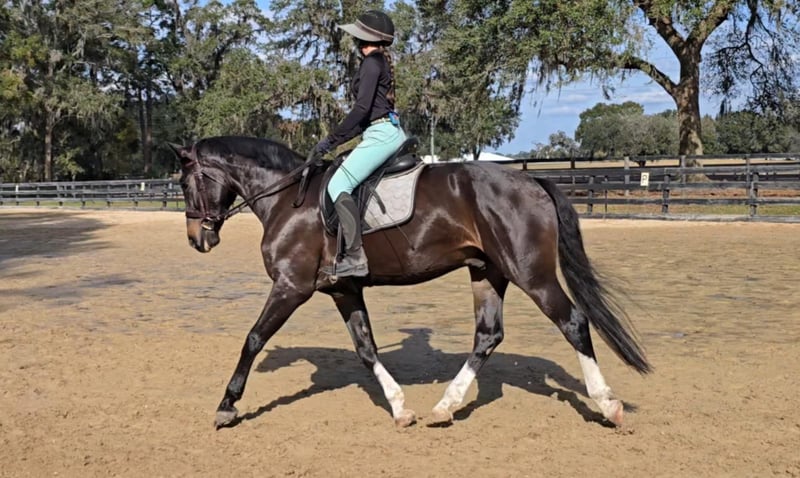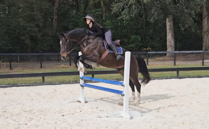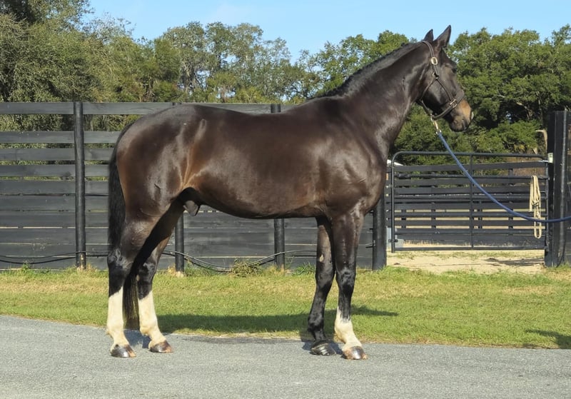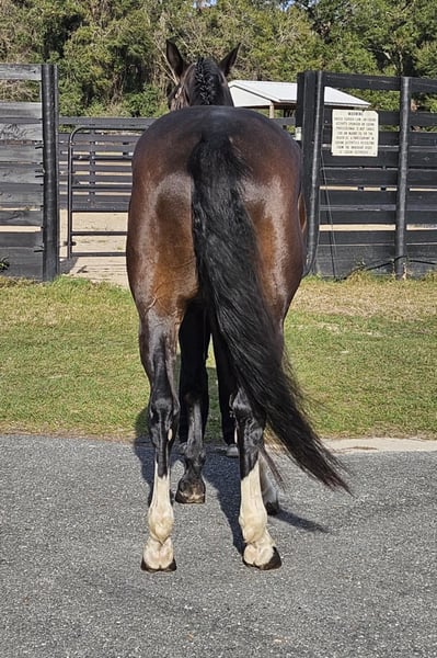 ONLINE AUCTION Place your bids at www.PlatinumEquineAuction.com Starting Bid $3500 Auction ends January 26th, 2025 Need a new saddle? Check out White Rock Saddles on our website or Facebook! Introducing the stunning 10yr 16.3h Warmblood gelding Raphael! Rotspon x Rubin Cortes x Karon Raphael is a Premium GOV Oldenburg lifetime registered with USHJA and USDF. Raphael is trained through 2nd level dressage and jumps around a 2’6″ course with scope for higher. He jumps cross country, trail rides, and works cows. He is a nice all-around type. His perfect rider would be an intermediate or advanced teen or AA looking for a horse to move up the levels in eventing or H/J. Raphael loves jumping! It is his favorite discipline. He has a smooth easy jump that is nice for riders that are new to jumping and still learning. He keeps an even pace around a course and maintains the same speed before and after each jump. He is tolerant and forgiving over fences and doesn’t mind if the rider can’t see a distance, chips, or sits back too early. He is the same to jump whether you ride every day or once a week. Although Raphael would prefer a rider who will spend every day at the barn doting on him. He loves attention and has a big personality. Raphael regularly hauls off-site for lessons and other riding activities. He is easy to haul and doesn’t mind traffic, construction, or dogs running underfoot. Raphael is a barefoot easy keeper and is up-to-date on shots, Coggins, deworming, sheath cleaning, hoof trimming, and floating. Please watch his video and call Show Me Sport Horses Rachel 352-467-5695 with any questions. Video shows multiple riders new to jumping taking him around a course (to show how saintly he is with riders learning to jump that make mistakes) as well as several off-site dressage lessons (to show how nice he rides in a new location). Raphael is offered with no reserve as we are selling our farm and need to downsize a few of the horses. Located in Ocala, FL, shipping available anywhere in the US or Canada. ONLINE AUCTION Place your bids at www.PlatinumEquineAuction.com Starting Bid $3500 Auction ends January 26th, 2025 Need a new saddle? Check out White Rock Saddles on our website or Facebook!
