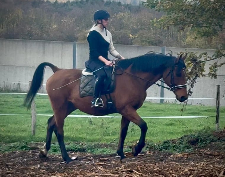 For sale on behalf of the owner! Name: Bursi Breed: Warmblood cross Gender: Gelding Date of Birth: May 9, 2013 Age: 12 years Height: 15.5 hh Color: Bay Pedigree: Unknown Temperament: friendly and approachable, curious, intelligent, brave, affectionate Training/ suitability: ridden, leisure riding Trail Experience: reliable and confident, both alone and in a group Health: dewormed Lodging: Stable, paddock Special Features: shoe and load-trainable, herd-friendly, pure trail riding horse Please note that the traits listed are based on our personal assessment and do not constitute guaranteed characteristics. Price: €2,500 (gross price) Have we sparked your interest? To give you a better impression of Bursi, we are happy to send you his riding video. Of course, we are available for a detailed description of the horse, personal consultation, and to answer all your questions via phone. Feel free to send us a WhatsApp message at any time or call us at: +49 151 19487595 Our phone hours are daily from 7:00 AM to 1:30 PM and from 8:00 PM onwards. We look forward to hearing from you! A clinical or radiological pre-purchase examination can be carried out by your veterinarian of choice. Bursi can be safely and comfortably delivered to his new home. We will handle all necessary preparations and transportation to ensure your new horse arrives stress-free, well cared for, insured, and in good health. Currently, we offer a carefully selected range of horses for sale. With us, you are sure to find your dream horse. Visit us also on our homepage: www.marvinsroyalhorses.de. Dear customers, we are happy to introduce you to our horses. You are welcome to lead, groom, saddle, longe, do groundwork, or test ride in the riding hall, on the arena, or in the field to get to know your new family member better. This costs €40 per horse, with each additional horse €30, and will be refunded upon purchase. Our address: Ferdinand Grube 50 53577 Neustadt-Wied Google Maps: marvinsroyalhorses