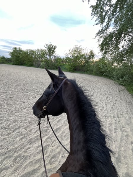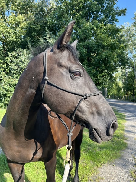 Auch wenn es mir nicht leicht fällt, habe ich mich dazu entschieden, für meinen Hugo ein neues Zuhause zu suchen, in dem er weiterhin ein schönes und passendes Leben führen darf. Zu Hugo: * Geboren: 03.05.2011 * Ca. 158 cm groß * Ungarisches Warmblut / Araber * Rappe/Braun Hugo ist ein unglaublich lieber und ehrlicher Kerl im Umgang. Er ist menschenbezogen, macht alles brav mit und zeigt sich im Alltag von seiner besten Seite. Aktuell steht er im Offenstall mit zwei Stuten, was sehr gut funktioniert. In der Herde ist er eher ranghoch bis mittig, aber dabei nie unfair oder böse zu anderen Pferden. Ausbildung & Arbeit: ——————————— Hugo wurde ursprünglich englisch ausgebildet, ich habe ihn dann auf Western umgestellt und reite ihn freizeitmäßig und genau das macht ihm auch am meisten Spaß. Er ist kein Anfängerpferd, sondern braucht einen erfahrenen, sicheren Reiter, der weiß, was er tut und ihm klare Hilfen geben kann. Wir haben früher sehr gerne Trail gemacht, das kennt er gut, ist aber aktuell etwas aus der Übung. Bodenarbeit, Longieren und Zirkuslektionen macht er sehr brav mit. Er kann z. B. den spanischen Gruß, wir haben mit dem spanischen Schritt begonnen (noch nicht ganz gefestigt), außerdem „Lachen“ und „Bussi geben“. Gelände & Transport: ——————————— Ins Gelände geht er sehr gerne, sowohl alleine als auch in der Gruppe. Wasserüberquerungen und Schwimmen kennt er. Beim Hängerfahren ist es so, dass er aktuell nicht einfach selbstständig einsteigt. Mit Ruhe, Geduld und seitlicher Begrenzung kann es klappen, ansonsten kann man ihn auch sedieren. Das sollte man ggf. mit einem Trainer weiter üben, da er früher problemlos frei eingestiegen ist. Gesundheit: ——————— Hugo ist regelmäßig geimpft und die Zähne wurden immer gemacht. Der Schmied kommt alle 6 Wochen, aktuell ist er vorne beschlagen, hinten wäre auch möglich. Er ist brav beim Schmied. Er hat einige Zufallsbefunde, die ihn nicht einschränken und bei denen er nie Schmerzen gezeigt hat: * Hufrollensyndrom vorne (einmal behandelt, seitdem beschwerdefrei) * Geringgradige Osteoarthrose im Krongelenk (rechtes Vorderbein) * Geringgradige Hufgelenksarthrose (rechtes Vorderbein) * Geringgradige Hufknorpelverknöcherung (rechtes Vorderbein) Diese wurden vor einigen Jahren festgestellt und sind seitdem unauffällig. Fütterung: —————— Er ist eher leichtfuttrig. Bei 24/7 Heu und zu wenig Bewegung nimmt er schnell zu. Mit ausreichend Training und passender Heuqualität ist Offenstall mit Dauerheu aber möglich. Aktuell bekommt er 2x täglich Heu sowie Kraftfutter. Wunschplatz: ———————— Ich wünsche mir für Hugo einen liebevollen Endplatz in Offenstallhaltung mit Herdenanschluss. Das ist für ihn einfach die beste Haltungsform. Eine reine Boxenhaltung mit wenig Auslauf kommt für mich nicht infrage. Sonstiges: —————— * Keine Unarten wie Bocken oder Steigen * Probereiten möglich (30 €, wird beim Kauf gegengerechnet ) * Zubehör kann gerne erworben werden * Pferdepass vorhanden Mir ist besonders wichtig, dass Hugo einen Platz bekommt, an dem er weiterhin gut umsorgt wird, regelmäßige Bewegung bekommt und einfach Pferd sein darf. Bei ernsthaftem Interesse freue ich mich über eine Nachricht.