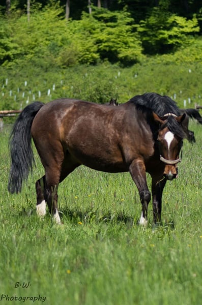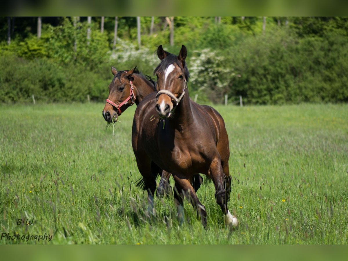 Wallach Westfale, Stm. 167 cm, braun, 18 Jahre alt und wurde bis zur A Klasse ausgebildet. Er ist ein Pferd in Boxenhaltung. Er besitzt einen sehr guten Charakter, d.h. kein Buckeln oder Steigen und verträgt sich gut mit anderen Pferden auf der Weide. All die notwendigen IOmpfungen sind vorhanden, er läuft barfuss, mit dem Schmiede kein Problem. Wir haben ihn bis jetztvielseitig geritten, also Dressur, gerne Springen und Ausritte im Gelände. Täglich kommt er im Winter für ein paar Stunden raus, im Sommer von 10 - 17 Uhr. Gegen Aufpreis gibt es Sattel und Trense dazu.