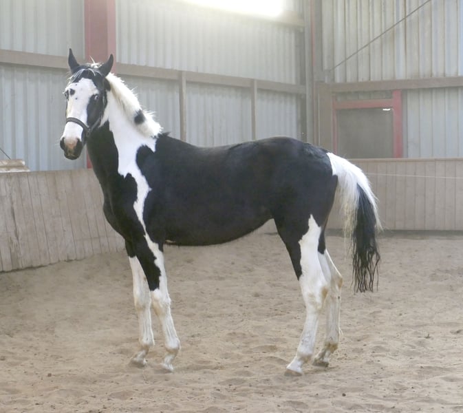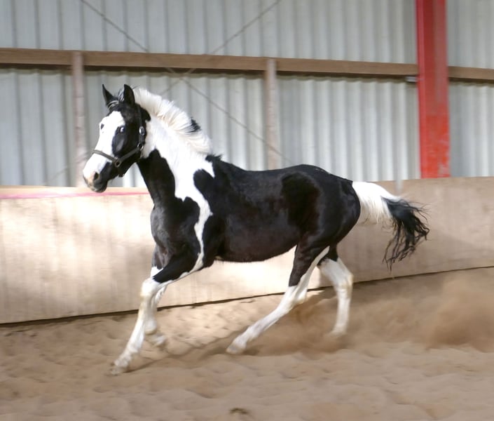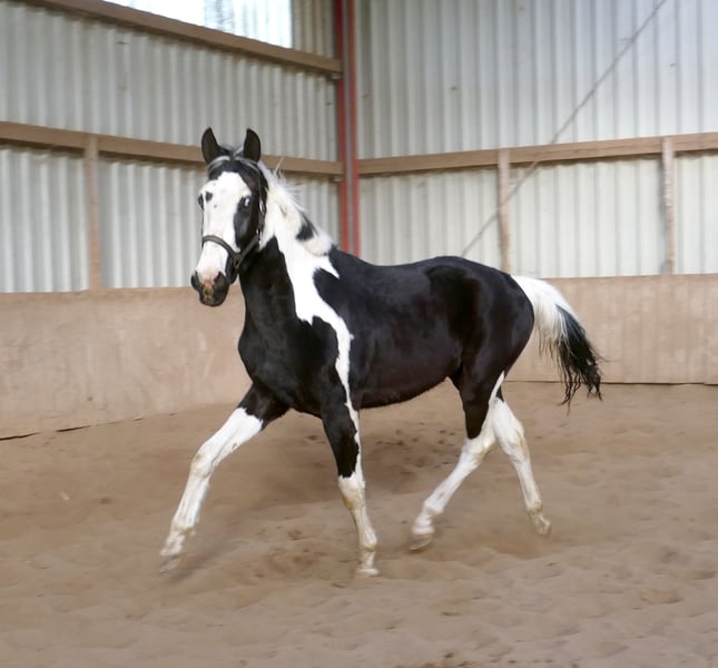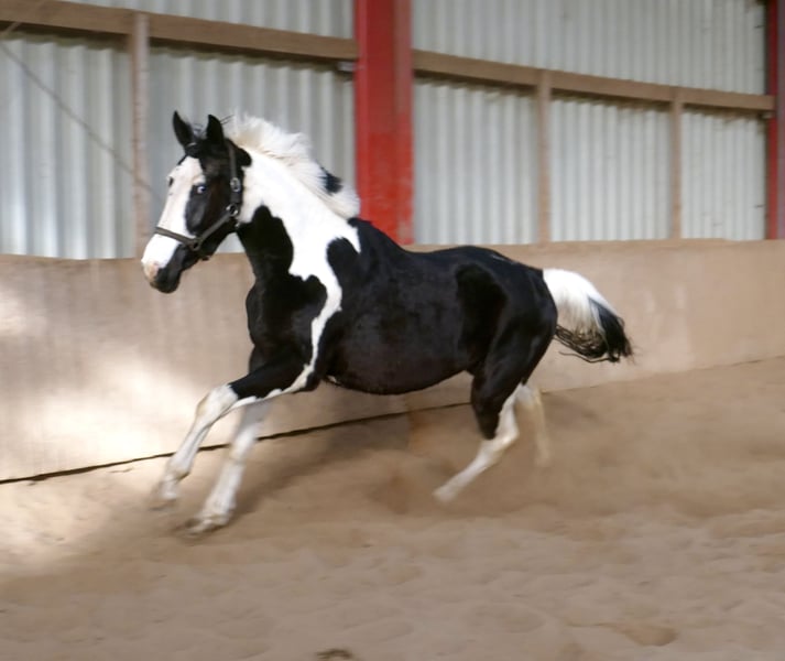 Traumnachwuchs in bunt gesucht? Cosmopolitan A - bald 3j. Wallach von Cadiz (Cordess-Clinton x Hearbreaker x Shakespeare x Potsdam NRW) x Ismo (Ilasso x First Gotthard x Zeus) x Cassone (Cor de la Bryere) . Mutter Ile de France hat bereits in S-Springen erfolgreiche Vollgeschwister sowie gekörte Vollbrüder. Dieser außergewöhnliche Schecke ist ein richtiger Hingucker. Bewegungsstarker Nachwuchs für Springen und Vielseitigkeit.