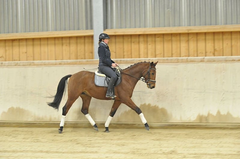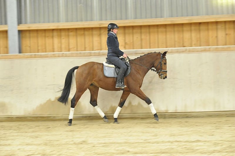 Eye-catching and stylish Flemming son offspring in a sought-after dark brown coat, with three very good gaits, talent, and strength over fences, combined with an honest character. A special recommendation for young competitive riders.