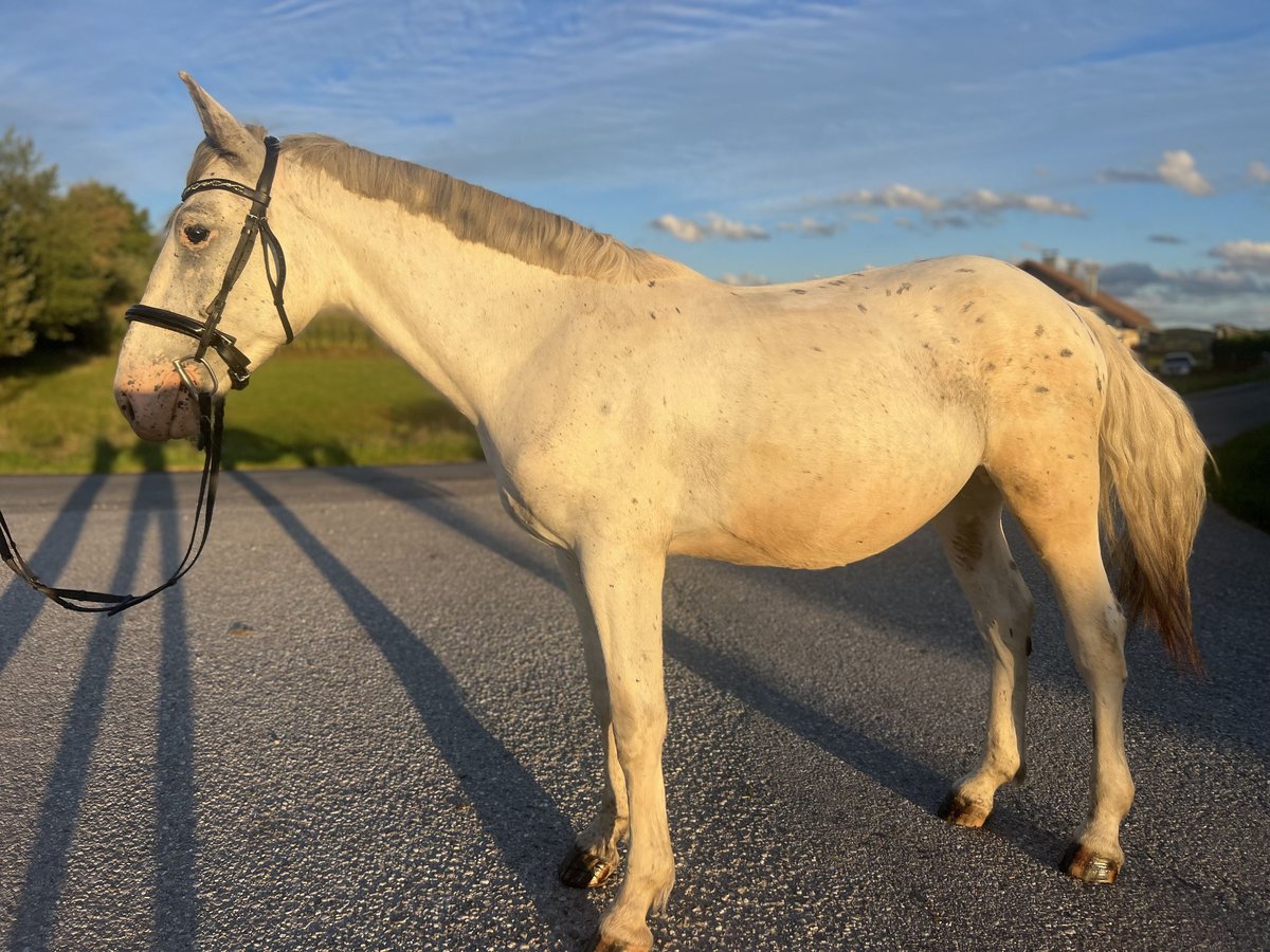 Vielversprechende Wallach mit brave und ruhige Charakter. Er ist 155cm groß und auch als Anfänger Pferd geeignet. Typische Hunter Pferd für Springen. Keine gesundheitliche Probleme auch im gemischte Herde ohne Probleme. Ist einfach zum pflegen und kann 4 GGA auf Reitplatz.Beim Hufschmied und transportieren ganz brav. Alleine ausreiten ist keine Thema für ihn. Für weitere Fragen einfach melden.