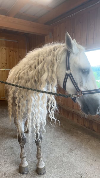Verkaufe eleganten Warmblut-Wallach – ideal für Dressur! Dieser bezaubernde Apfelschimmel-Wallach wurde im Jahr 2019 geboren und überzeugt durch sein strahlendes Auftreten und seine vielseitigen Einsatzmöglichkeiten. Mit einem Stockmaß von ca. 157 cm ist er perfekt für ambitionierte Reiter. Prince durfte auch schon etwas Turnierluft in der Klasse A schnuppern. Aktuell tasten wir uns im Training in die L Dressur rein. Im Springtraining zeigt er auch sehr viel Motivation und gab mit stets ein sicheres Gefühl. Er ist gesund, regelmäßig geimpft und schmerzfrei. Bei Interesse und für weitere Informationen stehe ich gerne zur Verfügung. Vereinbaren Sie einen Termin für eine Besichtigung und einen Proberitt!
