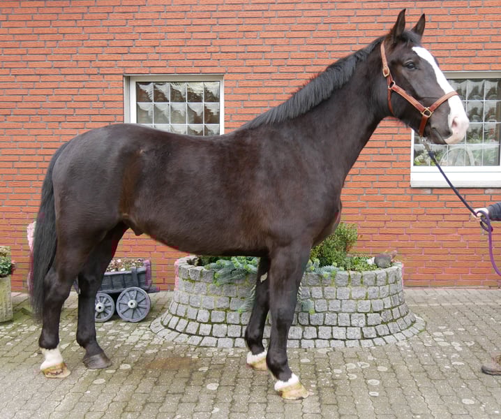 Name: Ekar Alter: 6 Jahre Stockmaß: 160 cm Geschlecht: Wallach Ausbildungsstand: geritten und Ein und zweispännig gefahren Rasse: Schweres Warmblut ( E Pass ohne Abstammung) Zum Verkauf steht dieser sympathische Rapp Wallach Ekar. Er ist ein echter Allrounder: Ausreiten, Halle, Platz und Kutsche Fahren macht er alles brav mit. Ekar ist barhufer, schmiedefromm und im Umgang total brav und menschenbezogen. Er könnte auch in einen Offenstall einziehen. Zur Zeit steht er in einer Box mit täglichem Weidegang, er verträgt sich sowohl mit Wallachen als auch Stuten. Alles weitere unter der Nummer 0176 62495567