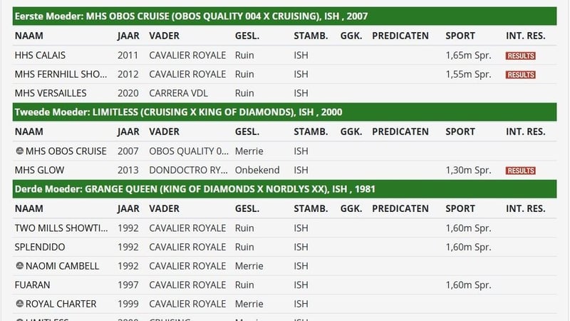 SPANISH SPORT HORSE AUCTION Del 16 al 18 de Marzo ! Regístrate: sshorseauction.com Es un caballo con una calidad extraordinaria, pero también muy sensible y perspicaz. Esto lo convierte en una fantástica promesa para que un jinete profesional lo desarrolle aún más, pero por esa misma razón no es adecuado para un jinete principiante o aficionado. Su padre es "CARRERA VDL", el cual no necesita presentación. Su hermano, "HHS CALAIS" , compite a un nivel de 1,65 m con nada menos que Michael Pender. Versailles también tiene otro hermano, "MHS Fernhill Showtime", que compitió a 1,55 m con Duarte Seabra. Para subrayar aún más su fuerte genética deportiva, eche un vistazo a la tercera madre, que ha producido nada menos que tres caballos de 1,60 m. ¿Busca un caballo sin experiencia con una calidad excepcional para seguir desarrollándolo? Entonces MHS VERSAILLES es el caballo que está buscando