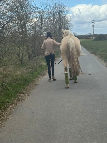 Zu verkaufen steht ein charmanter und Typvoller Palominowallach. Sancho am 29.05.2020 geboren und ca 165cm groß. Er ist nicht Beschlagen. Sancho ist ein sehr verschmuster und Menschenbezogener Wallach, der durch seine Palomino Optik sofort begeistert. Besonders viel Spaß machen ihm Ausritte und Spaziergänge ins Gelände. Bei der Bodenarbeit ist er immer motiviert dabei. Sancho kennt Doppellonge und ausgebundenes longieren. Aufgrund seines Alters ist Sancho kein Kinder oder Anfängerpferd. Er lässt sich lieb von älteren Kindern putzen. Ein Probereiten ist derzeit nicht möglich, da er länger nicht geritten wurde. Sancho wird auch an Händler verkauft. Bei Interesse und Fragen gerne per WhatsApp melden. Videos können geschickt werden. +4915739645591
