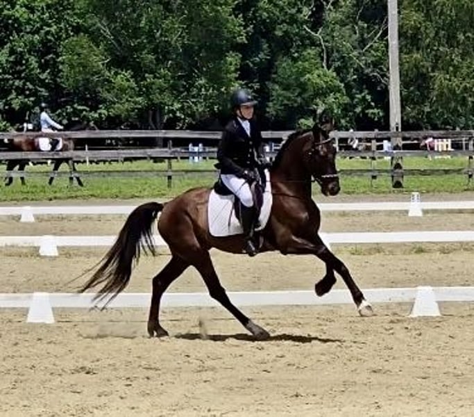 VERFÜGBAR AUF DEM ONLINE-PFERDE-AUKTION bei www.MagicHorseAuction.com GEBOTE sind jetzt offen bis Dienstag, 28. Oktober! – KAUF-OPTION “Jetzt kaufen” verfügbar! *Der endgültige Preis wird auf der Auktionsseite festgelegt* VERKÄUFER-KONTAKT: Katherine Cox, 917-821-4140 STANDORT: Lebanon, NJ „WAF Black Tie Affair ist ein außergewöhnlicher junger Wallach, der nach seinem nächsten Partner sucht. Unglaublich liebenswert und talentiert, ist dieser 5-Jährige 1,66 m groß, im DHH-Register eingetragen und außerdem für das KPWN-Register berechtigt. Black Tie hat sich in Springen und Vielseitigkeit hervorgetan, war in der Nordostregion unterwegs und hat in jedem Wettkampfring, in dem er antrat, Platzierungen erreicht. Derzeit springt er im Springreiter-Wettbewerb über einen Meter und startet im Anfänger-Versuchsbereich der Vielseitigkeit. Black Tie zeigt hervorragende Reflexe, beeindruckenden Umfang, angemessene Vorsicht und einen kämpferischen Geist. Er geht jede Situation mit großem Bewusstsein und starker Arbeitsmoral an. Immer der Publikumsliebling, zeigt Black Tie eine bemerkenswerte Bereitschaft, zu gefallen und zu performen. Er lädt sich problemlos in den Anhänger, wird angebunden, gebadet, geklippt, longiert, ist beim Hufschmied und Tierarzt zuverlässig. Er gräbt nicht und tritt nicht in den Anhänger, wartet geduldig auf seine Runde, auch wenn er alleine ist. Er reist gut und bleibt nachts ruhig im Stall, auch fern vom Heimatstall. Neben seinen Erfolgen im Springen und der Vielseitigkeit ist Black Tie auch auf dem Trail sehr gut unterwegs. Nicht schreckhaft, überquert er Brücken, Baumstämme, Wasser und hat keine Angst vor Hunden, Autos oder Fahrrädern. Er reitet alleine sowie in der Gruppe. Sein Vater ist der führende DHH-Hengst Hightanium, was diesem Wallach die Abstammung und das Talent verleiht, in jede Richtung zu gehen. Ideal für einen ambitionierten Amateur, der nach einem jungen Pferd mit Perspektiven in verschiedenen Disziplinen sucht.“