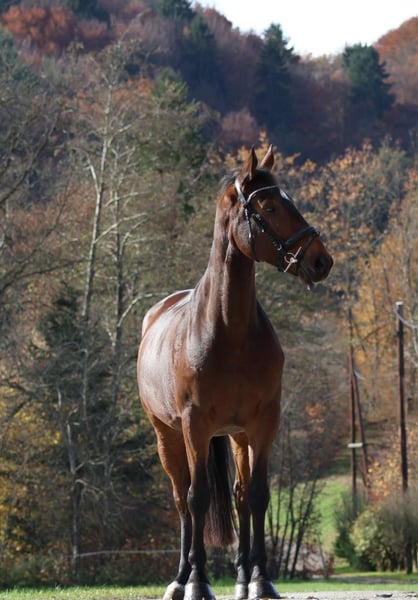 Verkaufe einen beeindruckenden Warmblut-Wallach, geborene 2019, in elegantem Braun. Mit einem Stockmaß von 170 cm. Er wurde sorgfältig ausgebildet. Er überzeugt durch seine Vielseitigkeit und sein angenehmes Temperament. Ein echtes Allround-Talent, das noch viel Potenzial für die weitere Ausbildung bietet. Bei Interesse freuen wir uns auf Ihre Kontaktaufnahme. Bereits am Springturnier vorgestellt.Wegen Bestandsverkleinerung herzugeben.