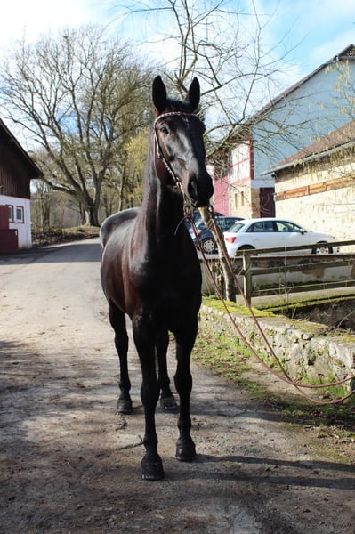 Wir möchten unseren stattlichen Nonius-Wallach, geboren in 2019, anbieten. Unsere elegante schwarze Perle beeindruckt nicht nur durch seine Größe von 175 cm, sondern auch durch seine vielversprechenden Bewegungen und sein herzliches Wesen. Mit seinem aufmerksamen und lernfreudigen Charakter sowie seiner Feinfühligkeit ist er der ideale Partner für anspruchsvolle Reiter, die die Qualität und den Einsatzwillen schätzen. Sein typvolles Aussehen und sein gutmütiges Temperament machen ihn zu einem wunderbaren Begleiter. Unser Wallach bringt eine solide Westerngrundausbildung mit und zeigt großes Potenzial für eine weitere Ausbildung im Dressurbereich. Er ist für erfahrene Reiter geeignet, die bereit sind, sein Talent weiterzuentwickeln. Bitte beachten Sie, dass ein tierärztlicher Befund vorliegt, der einen beginnenden Spat in den Sprunggelenken (Röntgenbilder 2025, Zufallsbefund) dokumentieren. Es sind jedoch keine Lahmheiten bekannt, und wir halten ihn sowohl im Offenstall als auch in der Box. Für Fragen oder weitere Informationen stehen wir Ihnen jederzeit gern zur Verfügung. Wir wünschen uns für unseren "kleinen" Freund ein liebevolles neues Zuhause! Es ist kein Notverkauf! Wir wollen ihm nur die Gelegenheit bieten sich in seinem Bereich weiter zu entwickeln da wir im Westernbereich andere Ziele verfolgen möchten.