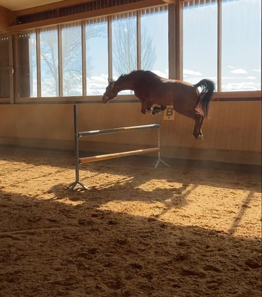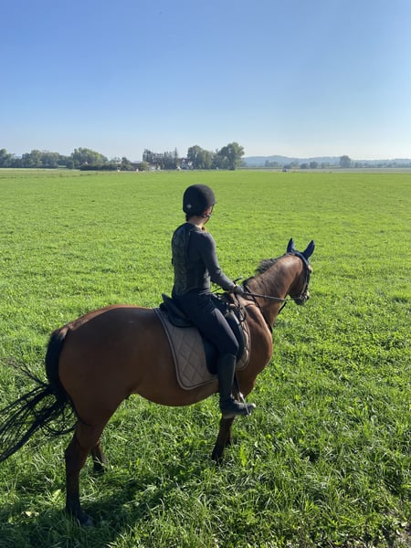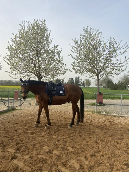 Dieser 8-jährige Wallach (*2017, ca. 162 cm) „Bubi“ sucht ein Zuhause bei jemandem mit Herz, Gefühl und Zeit. Ausbildung: Longe, Doppellonge, Stangenarbeit, Springvermögen: vorhanden, aber noch nicht gefördert (Mit Reiter ca. E-Höhe, Freispringen M-Höhe), Gelände Gesundheit: 2023 Chip-OP (ohne Einschränkungen - voll belastbar!) Magengeschwüre: behandelt – braucht angepasste Fütterung (wenig Fresspausen) Er ist kein Anfängerpferd, da er eine klare, faire und souveräne Bezugsperson benötigt, die ihm Sicherheit gibt und ihn ruhig, aber konsequent führt. In der Halle und auf dem Platz können auch Anfänger geführt oder an der Longe reiten. Er ist kein Durchgänger. Habe ihn seitdem er 3 1/5 ist und bin noch nie von ihm gefallen oder es kam auch nur annähernd in so eine Situation. Bubi kennt alles alltägliche (Traktor, Hunde, etc.) Bubi wurde regelmäßig geimpft + entwurmt (2x jährlich), dem Schmied vorgestellt (Schmiedefromm!), Physiotherapeutisch behandelt und die Zähne wurden ebenfalls jährlich (letztes Mal im August) gemacht. Haltung: Aktivstall (Wallachherde - stand noch nie mit Stuten zusammen, daher kann ich dazu keine Angaben machen) Ich würde mit für ihn wünschen, dass er weiterhin in so einer Haltungsform leben darf.
