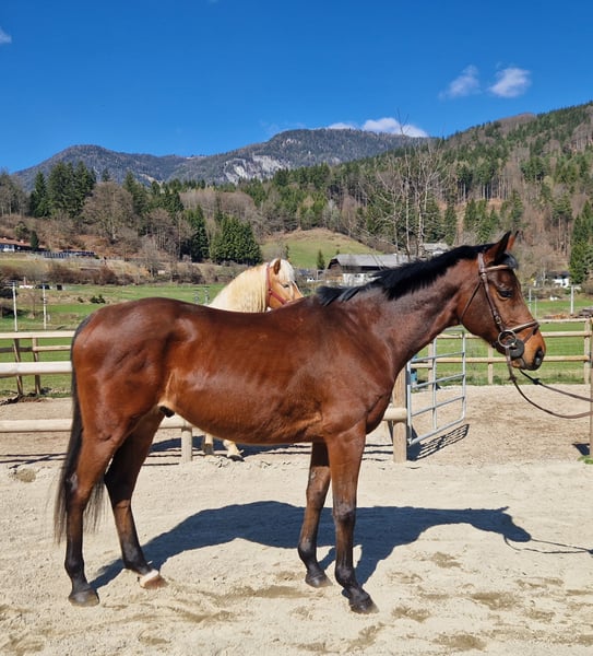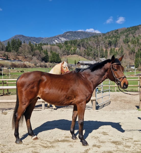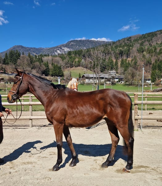 For sale is our handsome Hungarian Warmblood gelding, born in 2017, with a height of approximately 16.2 hh. This elegant bay gelding impresses not only with his appearance but especially with his impeccable character – a truly reliable partner in any situation. ✨ Properties: Very well-behaved in handling Sound and easy to load and shoe Absolutely not spooky Confident in the terrain – suitable for riding alone or in a group No vices 🏇 Training: Leisure riding Dressage up to A-level Pleasant to ride and sensitive to aids 💖 Suitable for: Due to his balanced and dependable nature, ideal for: Children and teenagers Less experienced or nervous riders Leisure riders seeking a safe and trustworthy horse 🩺 Health & Care: Healthy with no vices Regularly vaccinated and dewormed Suitable for both pasture and box stall housing Front shoes fitted 🏡 Additional info: Viewings and trial rides are available by appointment at any time. Matching accessories can be purchased together upon request. If genuinely interested, I look forward to your message!