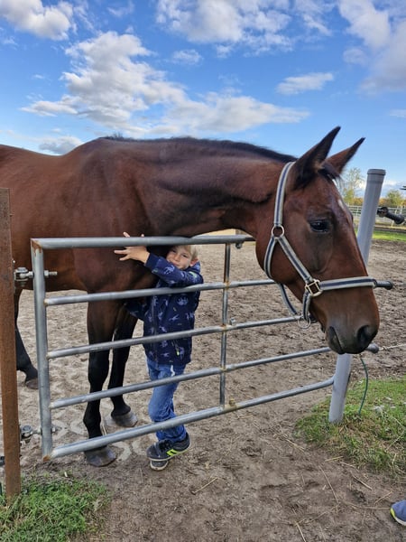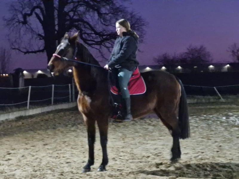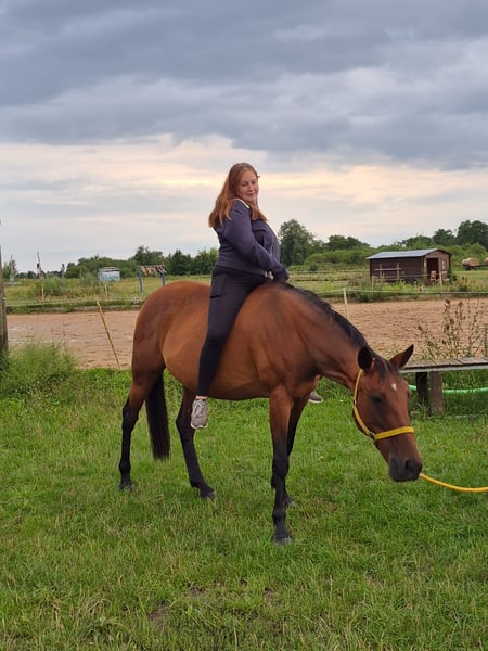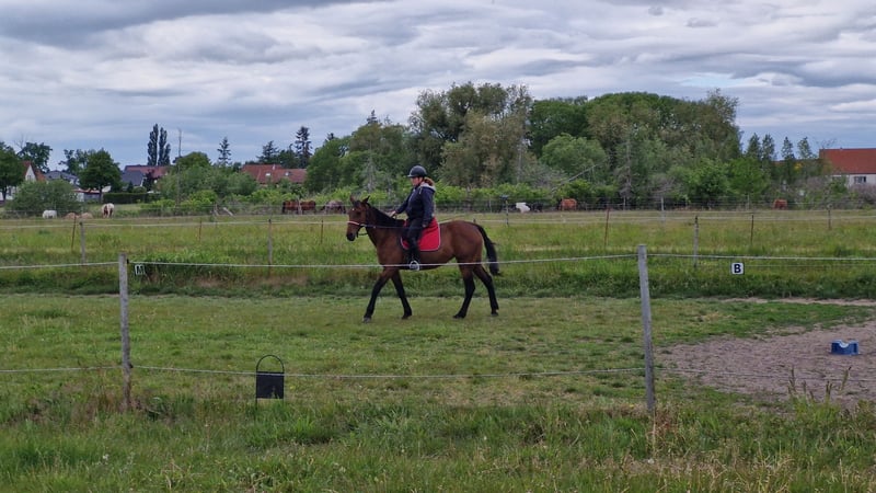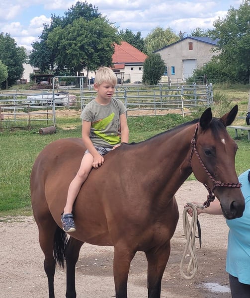 Liebevolle Freizeitpartnerin sucht ein neues Zuhause Wir suchen ein passendes, liebevolles Zuhause für unsere 16-jährige Traber-Stute mit einem Stockmaß von 1,65 m. Sie ist ruhig, menschenbezogen und besonders kinderlieb – unter Kindern zeigt sie sich unter dem Sattel stets vorsichtig und sanft. Sie kann alle 3 Gangarten und wird vom Boden aus gearbeitet. Zudem kommt, daß Sie eine besondere beruhigende Art hat bei Kindern. Eckdaten: *Rasse: Traber *Alter: 16 Jahre *Stockmaß: 1,65 m *Geschlecht: Stute *Haltung: Offen-/ Laufstall (muss beibehalten werden) *Ausbildung: Eingefahren und eingeritten, bis zum 8. Lebensjahr im Trabrennsport aktiv, danach 2 Jahre im Wanderreiten aktiv gewesen *Charakter: Sehr liebevoll, zuverlässig, kinderfreundlich *Besonderheiten: Zeigt unter erfahrenen Reitern Go, unter Kindern bleibt sie ruhig und achtsam *Regelmäßig beim Huforthopäden (alle 4–8 Wochen) *Entwurmung zuletzt im Juni *laut Vorbesitzerin hatte Sie schon ein Fohlen und könnte noch mal eins bekommen *roter Pferdepass ●Toll wäre es wenn sie im jetzigen Stall (in Vehlefanz) bleiben könnte da sie dort sehr aufblüht und gut angekommen ist ( kein muss ) Sie wird mit umfangreichem Zubehör abgegeben: -Baumloser Wanderreitsattel -Knotenhalfter mit Zügel -Abschwitzdecke -Fliegendecke -Regendecke -Winterdecke -Fliegenmasken -Halfter & Stricke -Trense -Putzzeug -Gerte & Longierpeitsche -Longe -Futter, Kräuter, Mineralien -Futterschüsseln Wichtig: Abgabe nur nach vorheriger Vorstellung und mit Vertrag! ❌ Kein Schulbetrieb, keine Händler! Wir wünschen uns für unsere Stute ein Zuhause mit Offenstallhaltung und wenn möglich mit Laufstallanbindung, ganzjährig Weide und 24/7 Heu, liebevollem Umgang und Freude am gemeinsamen Miteinander. Bei ernsthaftem Interesse freuen wir uns über eine Nachricht mit kurzer Vorstellung, welche Erfahrung habt ihr mit Trabern, was habt ihr mit ihr vor und wo würde Sie evtl. hinziehen.