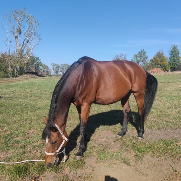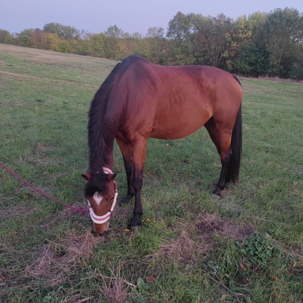 With a heavy heart, I am offering my mare Mary Lou for sale due to personal reasons. Mary is a 16-year-old, dark bay Thoroughbred mare standing at 16.1 hands. In handling, during riding at competitions or in the terrain, as well as in groundwork and grooming, she is an absolute trust horse and enjoys every kind of fun. Dogs are no problem, whether large or small, in the stable or while riding. She has competition experience up to class A in jumping. If Mary has piqued your interest, please feel free to send a personal message and arrange a viewing appointment to get to know her personality better.