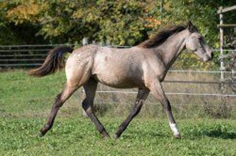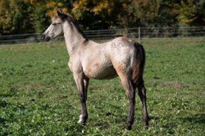 , menschenbezogen und mit viel "Gait" - zeigt auf der Weide regelmässig einen - und noch dazu in der begehrten, seltenen Farbe BUCKSKIN! Nuna ist ein gesundes, topfites, perfekt gezeichnetes Gangpferd aus der Verpaarung von Pataha (Foundation Appaloosa) und Ayita (Rocky Mountain Horse); sie trägt eine Kopie des DMRT3 Gait-Gens, hat also eine genetische Gang-Veranlagung (Tölt/Rack). Sie hat volle, reguläre Papiere vom Walkaloosa Horse Registry USA ausgestellt bekommen. 6-Panel Test durch den Vater (Foundation Appaloosa) negativ, kein Graugen (schimmelt also NICHT aus). BUCKSKIN ist nicht nur ein spezieller Farbschlag. Buckskin Pferde haben überlieferter Massen eine Menge überragender Qualitäten und Stärken, von denen man annimmt, dass sie auf ihr genetisches Erbe zu spanischen Sorraia Pferdelinien um die 1500 zurückgehen. Buckskin Pferde sind als "harte Arbeiter" bekannt. Man sagt ihnen nach, dass sie mehr Ausdauer, Entschlossenheit, sehr starke Hufe (der Begriff von Stahlhufen wird dabei erwähnt), stärker und bessere Knochen haben sollen und im Allgemeinen härter, mit mehr Ausdauer als andere Pferde seien. "Hart wie nasses Leder" ist eine passende Beschreibung der echten Buckskins. Nicht zuletzt sind sie auch deshalb und wegen ihrer attraktiven Färbung aus manchen Westernfilmen bekannt.
