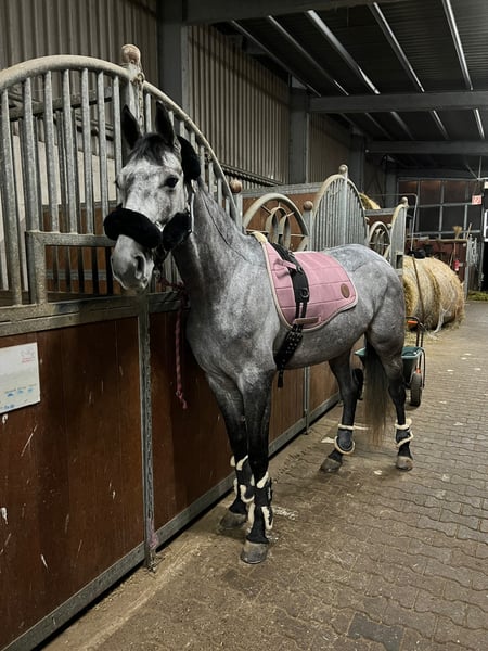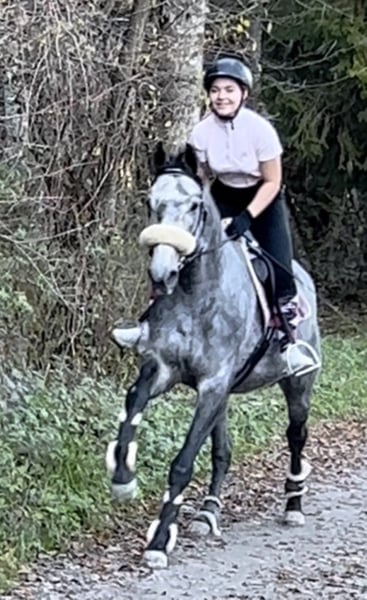 Schweren Herzens verkaufe ich meine 2017 geboren Schimmelstute Grace. Momentan ist sie ca 1.60cm gross (hinten stark überbaut), und noch im Wachstum. Im Mai wird Grace 5 Jahre alt. Da sie Schnell & wendig ist und gas geben & Springen ihre 2 Lieblingssachen sind eignet sie sich perfekt für die Vielseitigkeit oder auch Springen. Sie kennt Halle, Aussenplatz, Laufband, Gelände, Hufschmied, Tierarzt/Zahnarzt, Transporter, alles mögliche an Tieren -> Hunde, Katzen, Kühe, Ziegen, Lamas/Alpakas etc. Sie ist verkehrssicher und läuft entspannt neben schnell vorbeifahrenden Zügen (Strasse 2m neben gleis, keine wand). Autos, Lastwagen, Brücken, Tunnel, Baustellen etc sind auch kein Problem für sie. Sie geht alleine sowohl mit der Gruppe alle 3 Gangarten im Gelände, auch im dunkeln. Auf dem Platz oder in der Halle stören sie andere Pferde oder Musik nicht. Longieren kennt sie in jeder form. Freiarbeit macht ihr auch viel spaß. Grace ist ein sehr Charakterstarkes Pferd mit viel Temperament. Kinder und auch Kleinkinder sind sie geritten, jedoch braucht sie einen Konsequenten Reiter mit Jungpferde-Erfahrung, erst recht in diesem Alter. Sie möchte jeden Tag gefördert werden, daher kann ich sie mir nicht als Freizeitpferd vorstellen. Unverbraucht und noch nicht an Tunieren vorgestellt. Aktuelle Parcours Videos können gemacht werden. Ich suche ein 5* zuhause für Grace. Weide und viel Bewegung sind ihr wichtig. Preis der qualität entsprechend! Hier gilt PLATZ VOR PREIS. Grace kann jederzeit besichtigt werden. Um den Reit-Tourismus aus dem Weg zu gehen nehmen wir 20€ für einen Proberitt, der beim kauf natürlich rückerstattet wird. Bitte nur bei ernsthaften Interesse melden, Dankeschön ☺️