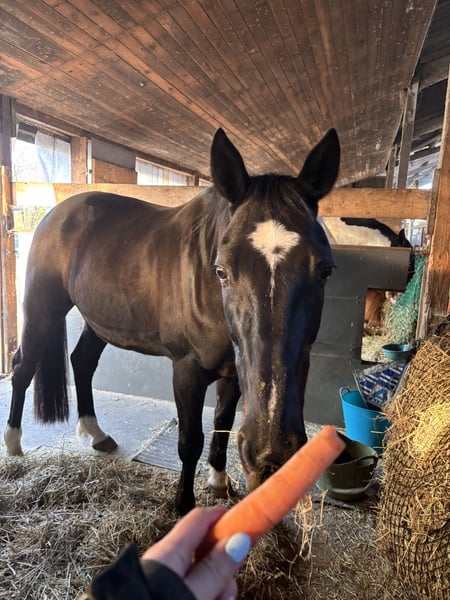 Schweren Herzens muss ich mich aus persönlichen Gründen von meinem Wallach Amari trennen. Ich suche für ihn nun ein tolles neues Zuhause, in dem er alles bekommt, was er braucht. Mir ist wichtig, dass sein neuer Besitzer immer pro Pferd denkt. Amari ist ein dänischer Traber und war auch einige Zeit Rennen gelaufen. Bei mir ist er nun seit Anfang 2023 und zum Freizeitpferd umgeschult geworden. Er möchte gerne gefördert werden und arbeitet immer toll mit. Wir machen mit ihm leichte Dressur, Equikinetic, Bodenarbeit, Gelassenheitstrainig, Stangenarbeit, Spaziergänge und Ausritte. In der Halle ist Amari konzentrierter und einfach zu händeln, draußen ist er eher umweltorientiert und benötigt eine ruhige Bezugsperson, wenn er dort mal unruhig wird. Daher gebe ich ihn auch NICHT als Anfängerpferd ab. In der Herde ist er rangmittig bis ranghoch und leider nicht ganz einfach. Mit gleichrangigen oder ranghöheren funktioniert es besser als mit rangniedrigen, da er diese vom Futter vertreiben will. Er kennt offenstall und boxenhaltung. Kommt auch alleine im Stall gut zurecht. Er orientiert sich wenig an anderen Pferden. Schön wäre ein zuhause, dass nicht all zu weit weg ist, damit ich ihn mal besuchen kommen kann. Melde dich gerne, wenn ernsthaftes Interesse besteht, um Amari kennen zu lernen. Ps.: das letzte Bild zeigt Amari, wo ich ihn grade gekauft habe.