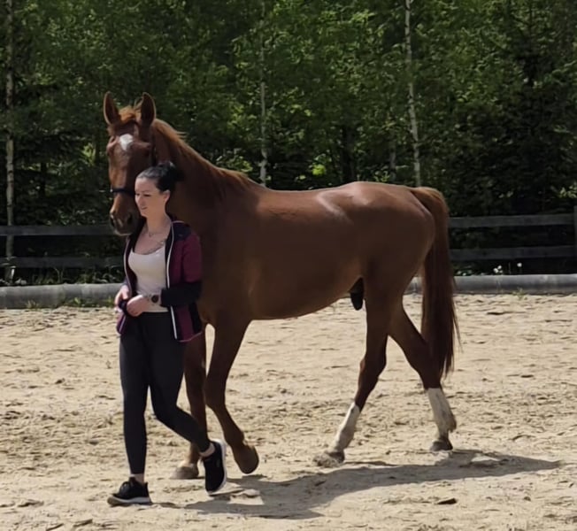 Na sprzedaż wystawiam mojego przepięknego i łagodnego ogiera Gidran. Urodził się w 2020 roku i został delikatnie wyprowadzony w trzech podstawowych chodach oraz przygotowany do jazdy. Jest bardzo przywiązany i kontaktowy z ludźmi, jednak ze względu na wiek potrzebuje doświadczonej i stanowczej ręki, która potrafi się zdecydowanie przeciwstawić, najlepiej z doświadczeniem w pracy z młodymi końmi. Życzę mu kochającej i spokojnej osoby, która zapewni mu niezbędne poczucie bezpieczeństwa i będzie go dalej rozwijać. Bardzo lubi pracę na ziemi i zawsze z zainteresowaniem uczy się nowych rzeczy. Również praca na przeszkodach sprawia mu ogromną radość. Potwierdzenie pochodzenia jest dostępne. Mam nadzieję, że tym sposobem znajdę dla niego odpowiedniego partnera. Oczywiście, priorytetem jest miejsce, nie cena. W razie pytań chętnie służę dodatkowymi informacjami.