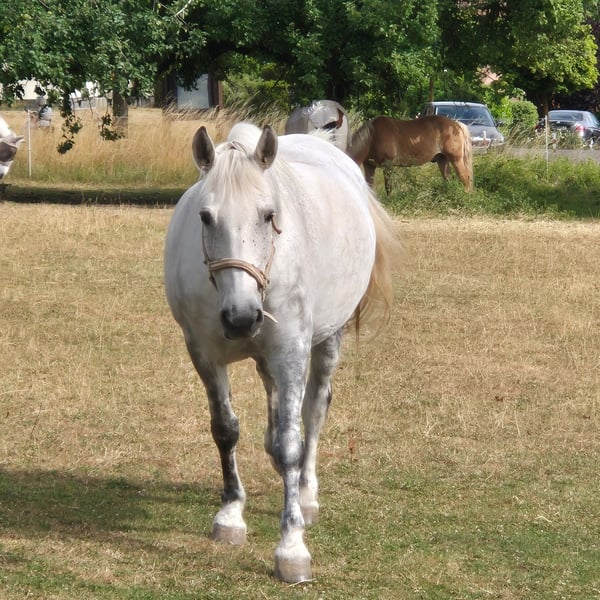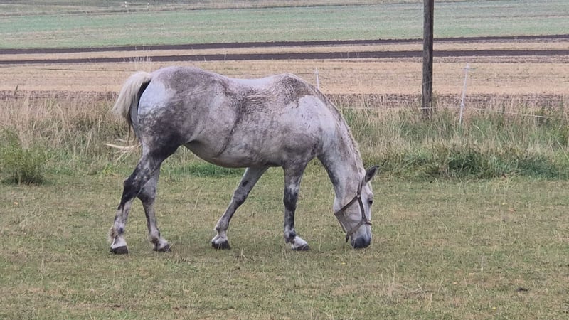 Freizeitpferd Erna zu verkaufen. Erna ist eine Kaltblut Mix Stute. Erna ist ein reines Freizeit Pferd welches am liebsten gemütlich ins Gelände geht. Erna zeigt in der Box einen deutlichen Futterneid, weshalb sie sich an beiden Hinterbeinen Piephacken zugezogen hat. Auf der Weide, in der Herde ist dies kein Thema und Erna ist verträglich. Erna geht Barhuf, der Schmied ist für sie Problemlos. Zum Thema Verladen kann ich jedoch nicht viel sagen, da sie zum letzten Mal vor 5 Jahren im Anhänger gefahren ist. Da war es kein Problem.