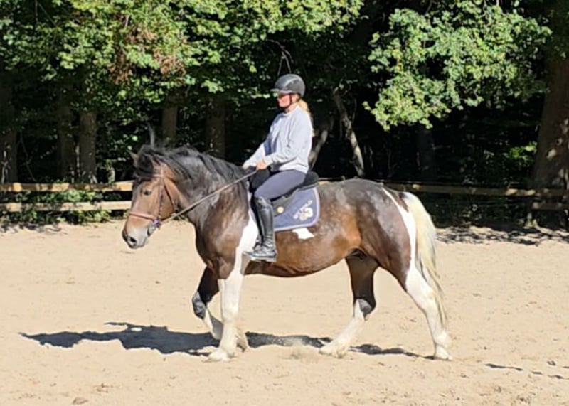 Our Annabell is looking for a new home! With her wonderful presence and charming personality, she wins hearts immediately – an ideal leisure horse for great rides and more. She has made many friends here, but her training time with us is coming to an end, and unfortunately, she must leave us soon. With us, Annabell is regularly ridden in dressage or out on the trails. She shows herself to be pleasantly diligent, eager to learn, and comfortable to ride. Despite her size, she possesses a certain athleticism that makes riding her particularly enjoyable. She has appealing movements, responds quite sensitively to aids, and makes a good impression both in the field and in the arena. She even handles small jumps skillfully and with enthusiasm. She has also been ridden by less experienced riders here and has behaved very well. With further training, she could certainly participate in smaller competitions. At her breeder, Annabell has also been driven in pairs. She is familiar with both open stable and box housing, is well-mannered in handling, is good with the farrier and loading, and is barefoot. If you are looking for a loyal, strong, yet pleasant leisure partner with a solid basic training for a draft horse, we look forward to your message! Video: https://youtu.be/KREMiNHrfiQ?si=7IayWPbLvnyVPZCw 8-year-old draft horse, mare, 1.60m, Clinical examination available "The description of the horse is based on subjective impressions and experiences on our part and is not a warranty of quality or assurance of characteristics. Riding trials are at your own risk. For the presentation/riding trial of the horse, we charge a fee of 30 euros. This will, of course, be deducted from the purchase price of the horse." You can find more photos, videos, and little insights into the everyday life of our horses on Instagram: [maresi_lange]. Feel free to take a look and get to know our horses a bit better in advance.
