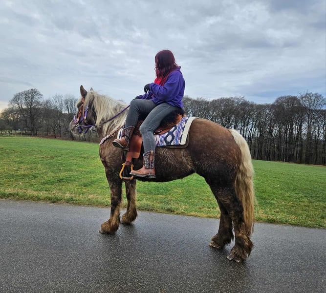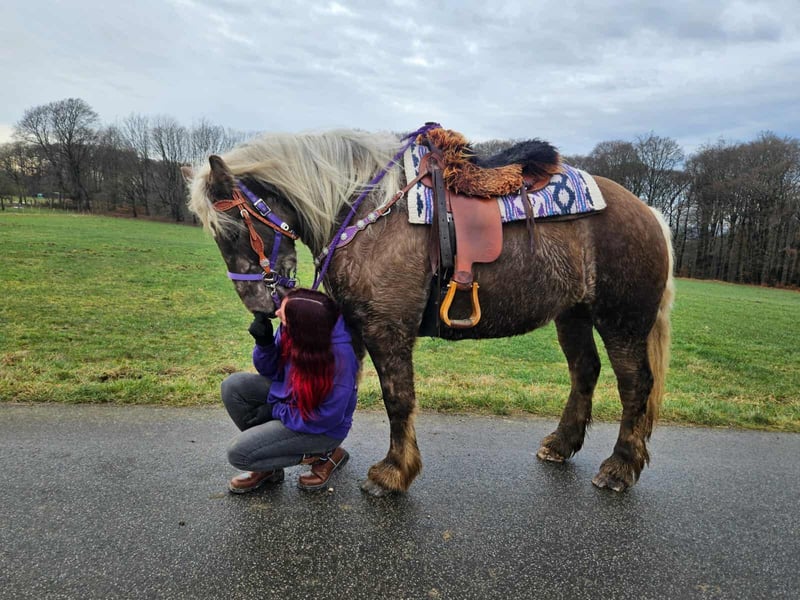 Baroque Coloured Chestnut Mare – Calm, People-Oriented MELODY Age: 4 years Height: approximately 16.1 hh Price: €6,900 Health Certificate: available ✨ Description: This lovely baroque chestnut mare impresses with her gentle, calm, and very people-oriented nature. She seeks contact with humans and is well-behaved, friendly, and straightforward in daily handling. Under saddle, she is already very well-behaved and pleasant to ride for her young age. She cooperates willingly, is attentive, and provides a comfortable riding experience. Due to her age, she still needs further development, but she has excellent potential and a positive attitude. She is open to new experiences, motivated, and willing to do everything – an excellent foundation for a future leisure horse with which one can grow together and enjoy many wonderful hours. Ideal for: Leisure riders or ambitious riders seeking a young, friendly, and well-behaved mare with potential, who enjoy ongoing training. Our horses are regularly: – dewormed – attended to by the farrier – osteopathically checked Transport can be arranged affordably upon request. Our services include: ✅ 3-month exchange guarantee ✅ Trial ride: €35, each additional horse €25 (credited on the same day if purchased) ✅ €100 immediate discount for pickup/transport on the same day ✅ Personal and honest advice Please contact us exclusively by phone: 0171 – 4001968 Available daily from 8 a.m. to 8 p.m. ⚠️ No emails or WhatsApp messages ⚠️ All information without guarantee
