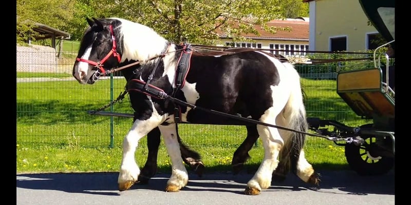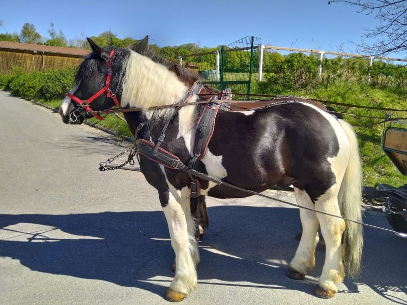 Mozart – Poney de trait froid, hongre, tache noire et blanche, 4 ans, actuellement 1,62 m au garrot, cheval de trait froid de qualité exceptionnelle avec un caractère remarquable, parfaitement monté et en loisir, très beau marquage, fondation absolument correcte, très bon pas, ferré partout, régulièrement vacciné et vermifugé. Notre Mozart est un cheval très spécial, sûr de lui et fiable en route, respectueux du ferrage et du chargement, totalement facile à manipuler, en parfaite condition d’entretien et de nourriture. €6000,00 Tél : 0171/3132074