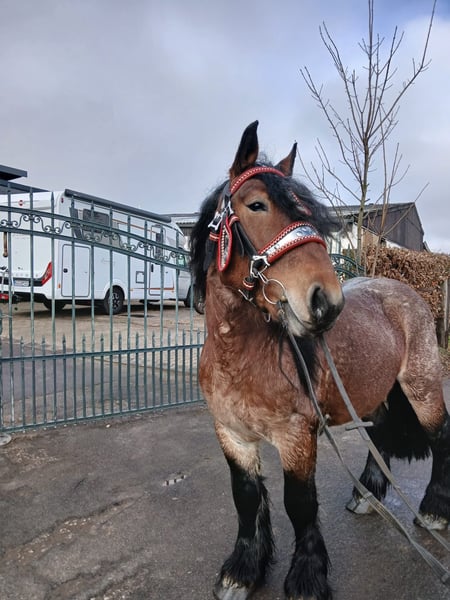 INQUIRIES ONLY BY PHONE: 0175 / 1679777 For sale is the Belgian Coldblood gelding Apollon, born in 2022, with an approximate height of 15.8 hh. Apollon impresses with his attractive appearance, balanced and friendly nature, as well as reliable behavior in daily handling. Apollon is very well-behaved and gentle, truly a kind-hearted gentle giant. The price is €5,000. Apollon can be viewed and test ridden by appointment in 53947 Nettersheim. For further information or to arrange a viewing, please contact us at …. To prevent reining tourism, we charge €40 for the test ride. This amount will be credited towards the purchase price.