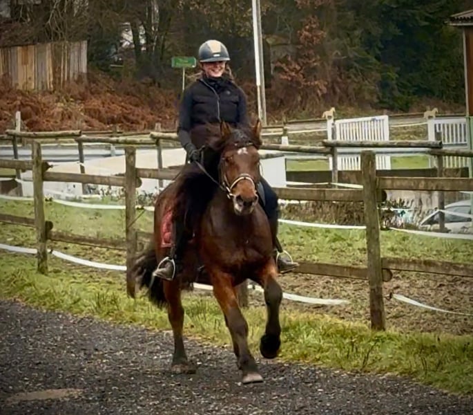 Name: Kirikou Rasse: Freiberger Mix Geschlecht: Wallach Geburtsdatum: 22.08.2020 Alter: 5 Stockmaß: 1.50m Farbe: Braun Abstammung: nicht bekannt Charakter: menschenbezogen, lernwillig, neugierig, intelligent, aufmerksam Ausbildung/Eignung: angeritten, Freizeit Geländeerfahrung: zuverlässig, unerschrocken, alleine und in der Gruppe Gesundheit: entwurmt, geimpft, Barhufer, ekzemfrei, Zähne kontrolliert, ostheopatisch behandelt Haltung: Box, Offenstall Besonderheiten: sehr sitzbequem, verladefromm, herdenverträglich Die genannten Eigenschaften beruhen auf unserer persönlichen Einschätzung und stellen keine zugesicherten Merkmale dar. Preis: 5900€ (Bruttopreis) Haben wir ihr Interesse geweckt? Um Ihnen einen besseren Eindruck von Kirikou zu geben, senden wir Ihnen sehr gerne sein Reitvideo zu. Selbstverständlich stehen wir Ihnen für eine ausführliche Beschreibung des Pferdes, persönliche Beratung und zur Beantwortung aller Ihrer Fragen auch telefonisch zur Verfügung. Bitte schreiben Sie uns hierfür jederzeit eine WhatsApp Nachricht, oder rufen unter folgender Telefonnummer an: +49 15119487595 Unsere Telefonzeiten sind täglich von 7:00 - 13:30 sowie ab 20:00Uhr. Wir freuen uns über Ihre Kontaktaufnahme! Eine klinische oder Röntgenologische Ankaufsuntersuchung kann gerne vom Tierarzt Ihrer Wahl durchgeführt werden. Natürlich kann Kirikou sicher und komfortabel in sein neues Zuhause geliefert werden. Wir kümmern uns um alle notwendigen Vorbereitungen und den Transport, damit Ihr neues Pferd stressfrei, gut betreut, versichert und wohlbehalten im neuen Zuhause ankommt. Zurzeit präsentieren wir eine sorgfältig ausgewählte Vielfalt an Verkaufspferden. Bei uns finden Sie garantiert Ihr Traumpferd. Besuchen Sie uns auch gerne auf unserer Homepage unter: www.marvinsroyalhorses.de. Sehr geehrte Kunden, gerne stellen wir Ihnen unsere Pferde vor und führen, putzen, satteln, longieren, Bodenarbeit sowie Probereiten in der Reithalle, auf dem Platz oder im Gelände ist Ihnen möglich, um Ihr neues Familienmitglied näher kennenzulernen. Dieses kostet für ein Pferd 40€, für jedes weitere 30€ und wird beim Kauf wieder erstattet. Unsere Adresse lautet: Grube Ferdinand 50 53577 Neustadt Wied Google Maps: marvinsroyalhorses