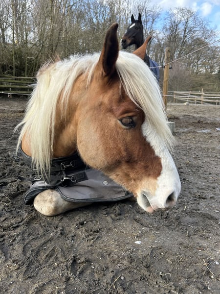 5-letni mieszaniec konia zimnokrwistego, wysoki na 155 cm.