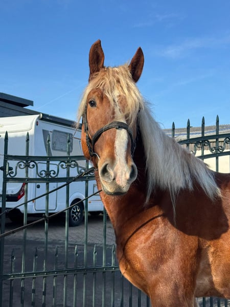 7-jähriger Wallach, ca. 160 cm groß. Brav im Umgang und freizeitmäßig geritten.