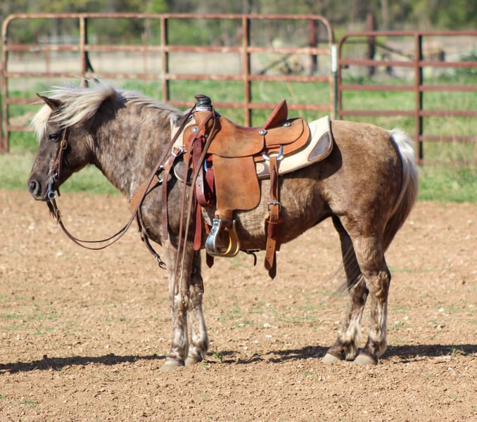 "AVAILABLE ON ONLINE HORSE AUCTION AT www DOT PlatinumEquineAuction DOT com BIDDING OPEN NOW thru SUNDAY | APRIL 12TH! *Final price will be determined on auction site* CONSIGNOR CONTACT INFO: Stephenville Cattle Co. 254-459-1046 LOCATION: Stephenville, TX Coco Puff is a 10-year-old silver dapple pony mare standing 12.1 hands tall—the perfect size for young riders to learn and grow with. If you’re looking for a safe, dependable starter pony, she checks all the boxes. She’s the kind you can begin on the leadline and confidently let the kids progress on as they gain experience. This little mare has truly done it all. She’s been used around the sale barn penning cattle and has spent plenty of time out on the ranch with our boys. Coco Puff is naturally more “whoa” than “go,” making her a great confidence builder, but she’ll step up and go when asked. She’s happy to follow along behind dad’s big horse while gathering cattle or goats, and she’s just as comfortable heading out on the trail. Coco Puff rides out alone or in a group with no issues. She’s been exposed to just about everything—flags, tarps, and all kinds of ranch activity—and handles it with ease. She’s a kind, gentle pony with excellent ground manners. She’ll cross logs, water, and rough terrain without hesitation. Coco Puff has been ridden by both confident and timid kids and takes great care of her riders. With summer right around the corner, she’s the perfect pony to keep the kids outside, learning, and making memories. Need hauling that’s no problem we can set you up with haulers world wide to get Coco Puff anywhere in the country. Call or text Chris (254) 459-1046 with questions or set up a time to come see her. Located in Stephenville, Texas.