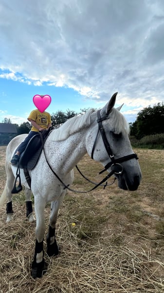 For sale: mare, turning 12 years old this year, approximately 14.1 hh, trained in all three basic gaits. She has competition experience in show jumping up to 75 cm, with potential for more (she actively participated in open season competitions for three years). At home, she jumps up to 105 cm under saddle, and in the corridor, she can handle jumps up to 120 cm. She rides confidently in terrain alone or in groups, occasionally leading the pack. She participated in a demonstration during a festival and handled the large audience and numerous scare devices without any issues. This horse is suitable for a single, experienced rider. Not intended for recreational riding, but also excellent for small children’s pony rides. Proven as a mother; she has given us one healthy and strong foal (her foal from 2021 is shown in the last photo). She has never been ill. Regularly vaccinated and dewormed, under constant supervision of a physiotherapist and farrier. Ridden exclusively by me for the past five years. Due to my strong sentimental attachment to this mare, I reserve the right of first refusal in the event of her future sale, as specified in the contract. Initial contact via SMS only. I can send riding videos. Viewings are possible on-site :)