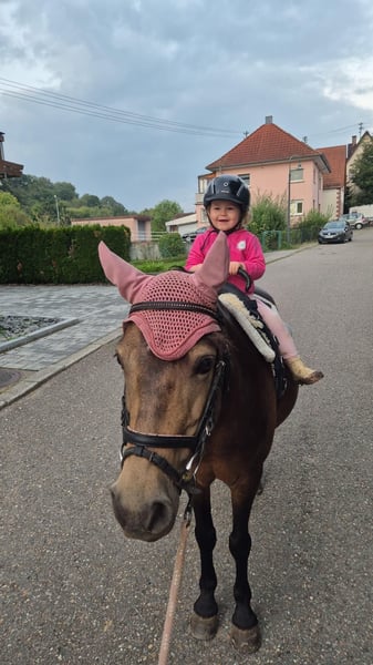 Due to her offspring, this exceptional children's pony is now available for sale. Cookie is THE reliable partner when it comes to the tiniest beginner riders. She has a heart of gold and an invaluable temperament. Her calm and content demeanor attracts every young rider. Caring and affectionate, she looks after each child, whether they are around her or sitting on her back. With Cookie, anything is possible—lunging, riding without a saddle, jumping, hacking, playing, vaulting, even painting, etc. Children can fully lead, groom, tack up, and ride her independently. She has been here for 8 years and is my best school pony. Cookie is exceptionally balanced, not spooky, absolutely well-behaved, obedient, and straightforward. She is used daily for riding lessons with children from age 3 up to about 12 years old. Cookie is always motivated and loves variety. She is also regularly ridden by older children, which is typical for a reliable children's pony. Thanks to her sensitive and attentive nature, she immediately senses when a small or nervous beginner is on her back and adjusts accordingly. She is always motivated, no lazy bones, never lazy, and incredibly enduring—both physically and mentally. Cookie has never been ill or injured here, is regularly dewormed, vaccinated, and has been presented to the dentist. She has successfully foaled three foals without any issues. Cookie has a mild summer eczema, which is hardly noticeable. From spring to fall, she wears a fly sheet and is sprayed with fly spray before riding. She remains suitable as a school pony or as a children's/family pony for those seeking a reliable, well-behaved, and well-trained pony.