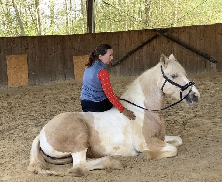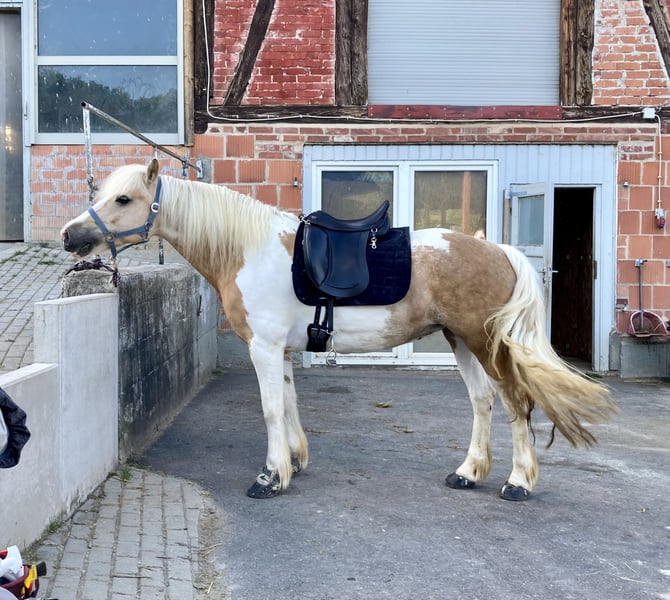 Meggi ist eine fröhliche, vielseitige fast 15-jährige Reitpony-Tinker Stute. Sie ist sehr gut am Kappzaum vom Boden und an der Longe gearbeitet und mag auch Freiarbeit. Meggi ist ein tolles Gelände-und Wanderreitpony und sehr herdenorientiert. Aktuell kuriert Meggi eine Lahmheit aus. Da dies aufgrund der hier möglichen Haltungsbedingungen sehr herausfordernd ist, erwäge ich einen Verkauf, wenn die Behandlung fortgesetzt wird und die Rahmenbedingungen besser sind. Noch benötigt sie Boxenruhe und wird täglich geführt. Meggi ist ein leichtfuttriges Pony, daher ist eine grasfreie Haltung o.ä. ideal. Bei Interesse und mit Fragen melden sie sich gerne. Platz vor Preis.