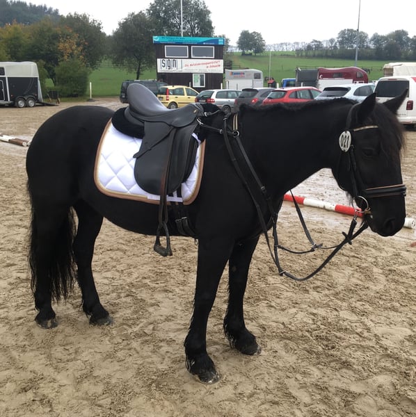 Traumpferd sucht schweren Herzens ein neues zu Hause… Manche Pferde haben einfach alles was man sich wünschen kann. Und genau so ein tolles Herzenspferd muss ich nun leider aus gesundheitlichen Gründen meinerseits abgeben. Sira ist eine ca. 17-18 jährige, ca. 1,47 m große Pony-Stute. Sie vereint ganz viele unbezahlbar tolle Eigenschaften. Sie ist freundlich und neugierig, absolut zuverlässig, unerschrocken und stets motiviert - dabei sehr angenehm im Temperament (ruhig bis mittel), immer kontrollierbar und immer einfach nur lieb. Ein zu 100 % absolutes Verlasspferd. Es gab in den 14 Jahren, die sie in meinem Besitz ist, keine einzige Situation, wo sie kopflos war oder irgendwelche negativen Eigenschaften gezeigt hat. Sie ist ein echtes Verlasspferd, das seinem Reiter jederzeit ein gutes Gefühl gibt. Egal ob beim Anhänger fahren, in fremder Umgebung oder beim Tierarzt/Schmied, sie ist einfach immer brav und unkompliziert! Ein Pferd wie man es sich nur wünschen kann - absolut selten und wirklich kostbar. Sira macht einfach alles mit und schenkt einem viel Freude mit ihrem lieben und zuverlässigen Charakter. Ein Pferd, was man so auf Grund dieser Kombination aus Charakter und Nervenstärke eigentlich niemals abgeben und verkaufen würde. Manchmal kommt das Leben aber einfach anders als man es sich wünscht. Daher suche ich schweren Herzens ein zu Hause, was dieses tolle Pony zu schätzen weiß und ihm einen Lebensplatz bieten kann. Sira's ausgeglichener Charakter macht sie zu einem idealen Partner für die ganze Familie. Da es mir super wichtig ist, dass Sira ein absolut passendes zu Hause findet, könnte ich mir unterschiedliche Optionen bezüglich einer Übernahme vorstellen. Denkbar wäre - eine langfristige Reitbeteiligung mit ernsthaftem Kaufinteresse und angemessener monatlicher Kostenbeteiligung - eine zur Verfügungstellung (wenn möglich Stallgebunden) - eine Komplett-Übernahme. Leider hatte Sira vor 3 Jahren einen Reheschub (ohne Hufbeinabsenkung). Dieser ist komplett ausgeheilt (Röntgen Bilder können gerne eingesehen werden) und sie hat hierdurch keinerlei Beeinträchtigungen. Jedoch muss die Haltungsform dementsprechend angepasst werden. Sie darf nicht mehr ins Gras und sollte weiterhin „schlank“ gehalten werden. Als Springpferd sollte sie aus reiner Vorsicht auch nicht mehr eingesetzt werden (kleine gymnastizierende Sprünge oder Stangenarbeit sind natürlich möglich). Sie ist vorne beschlagen. Sira wird nur in allerbeste Hände abgegeben und auch nur, wenn wirklich alles passt. Der Verkauf würde inklusive Zubehör erfolgen. Der Kaufpreis ist verhandelbar und nicht ausschlaggebend für meine Abgabeentscheidung. Hier gilt definitiv Platz und Sympathie vor Preis! Bei Rückfragen stehe ich natürlich gerne zur Verfügung. Der Verkauf erfolgt unter Ausschluss jeglicher Sachmangelhaftung. Die Haftung auf Schadenersatz wegen Verletzungen von Gesundheit, Körper oder Leben und grob fahrlässiger und/oder vorsätzlicher Verletzungen meiner Pflichten als Verkäufer bleibt davon unberührt.