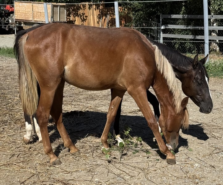 Chice Fuchsstute mit hellem Langhaar Wir bieten eine bezaubernde Reitpony, geboren 2024, zum Verkauf an. Mit einem Endstockmaß von rund 146 cm ist sie perfekt für kleine Reiter oder ambitionierte Nachwuchsreiter geeignet. Sie ist freundlich im Umgang, klug, mutig und zeigt bereits gut Potenzial für den Dressurbereich - natürlich kann sie auch ein tolles zukünftliches Freizeitpferd werden. Bei Interesse freuen wir uns auf Ihre Kontaktaufnahme!