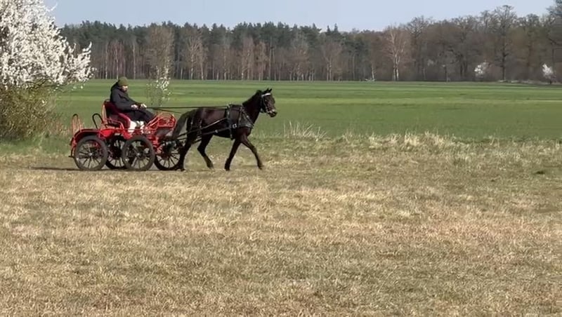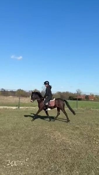 *płeć: klacz *maść: ciemno gniada *rasa: kuc *urodzona marzec 2023r. *spokojna przy zabiegach pielęgnacyjnych i kowalu, *jest nauczony podawania nóg, chodzenia na uwiązie i wiązania, *padokowana z innymi końmi, *chodzi przy bryczce w parze oraz pojedynku, *przyjęła jeźdźca i zaczyna pracę pod siodłem, Cena 1900€ do negocjacji Możliwy transport